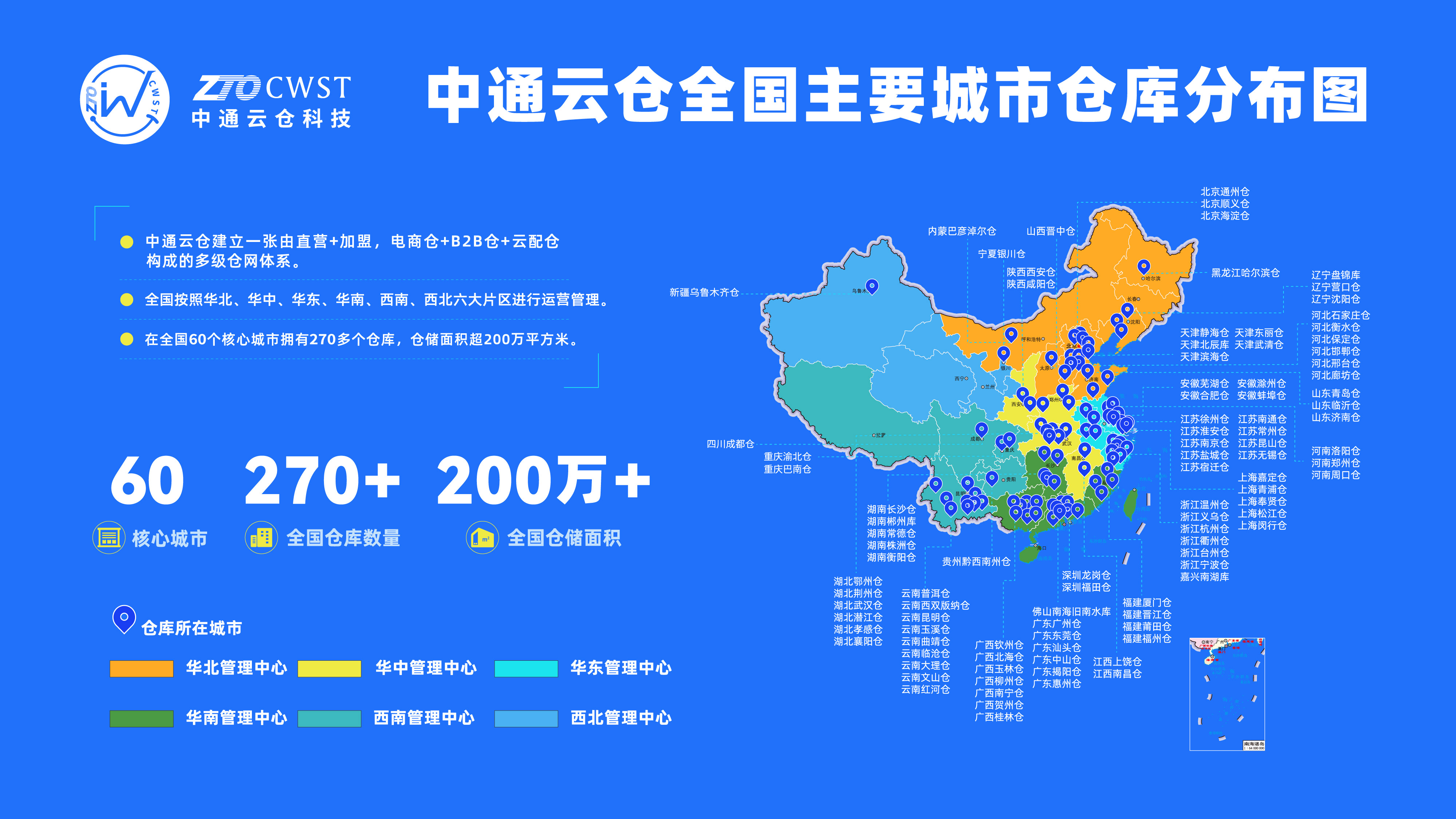 中通云倉科技全國(guó)主要城市倉庫分布圖